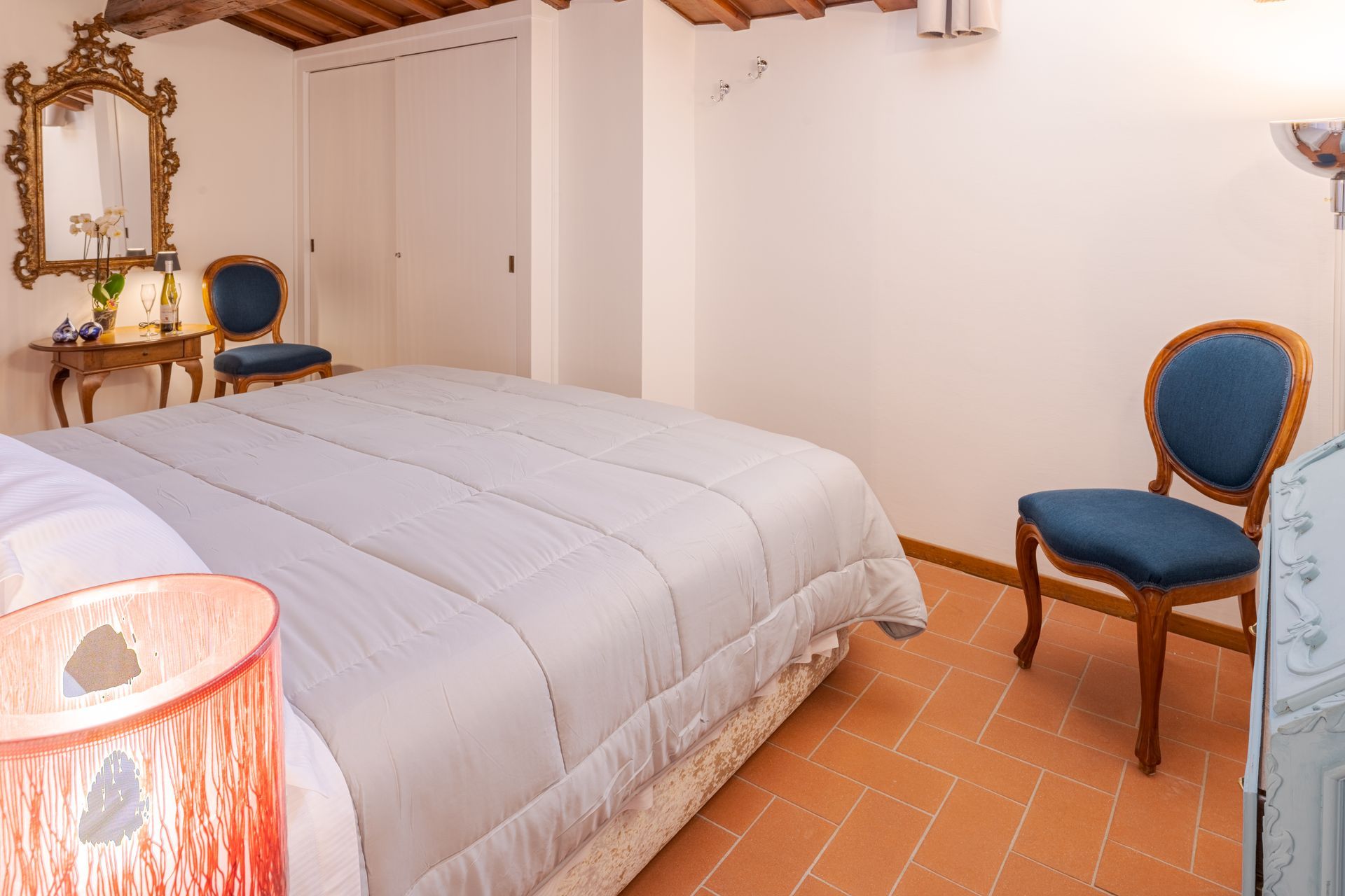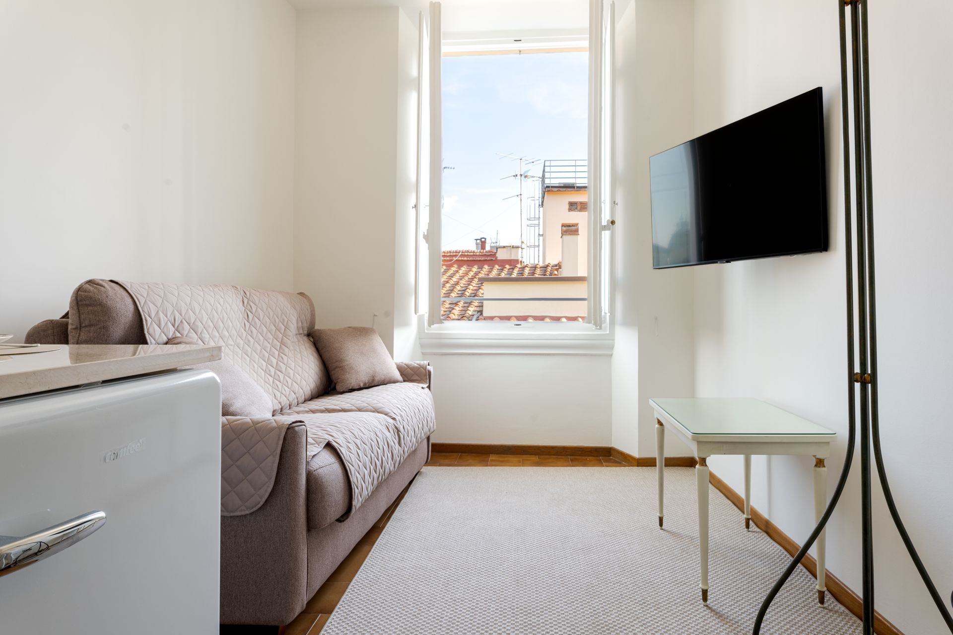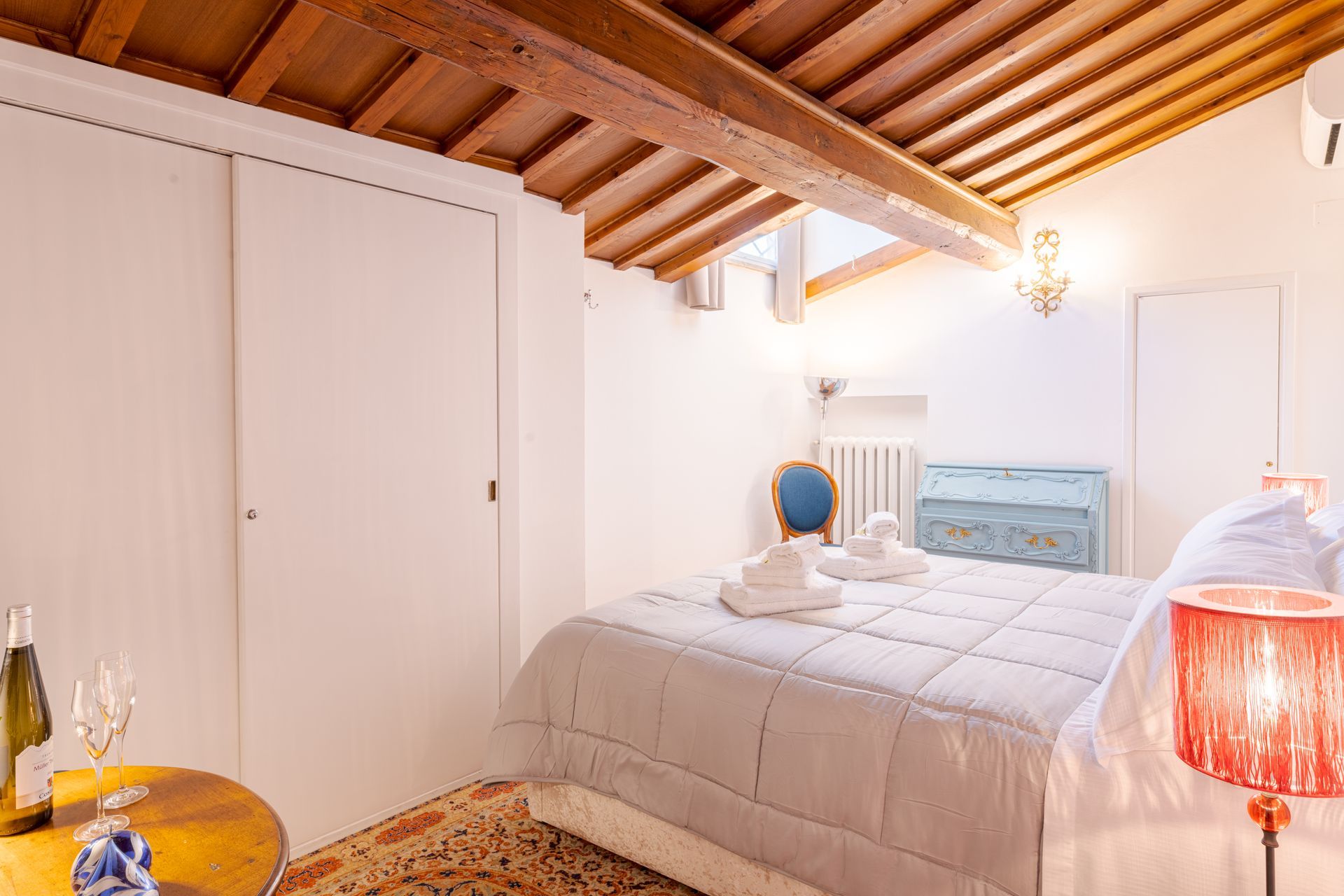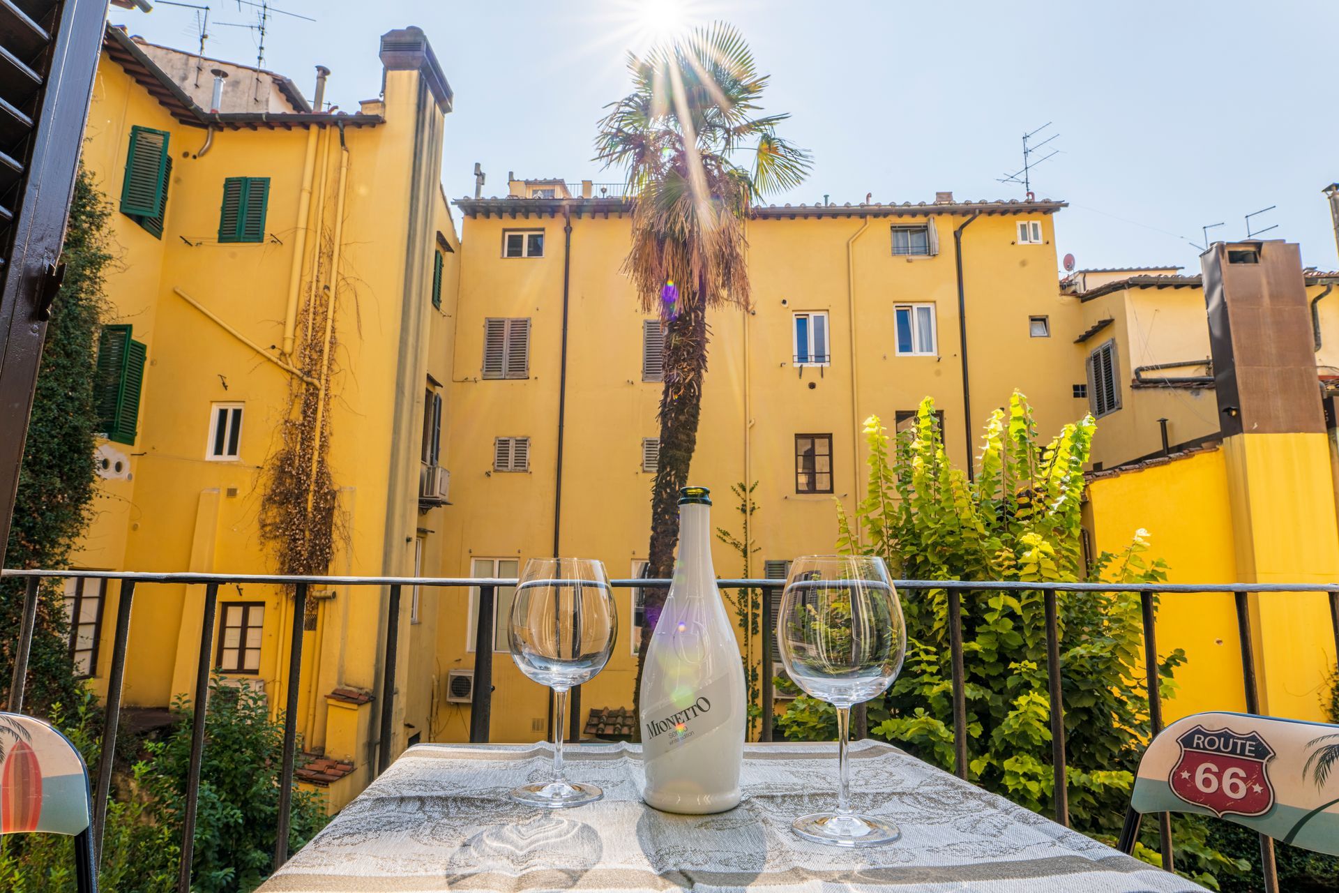 L’appartamento si trova nella porzione interna di Palazzo Pepi e non ha alcuna finestra vie esterne, ha una splendida vista sul giardino interno del Palazzo e gli infissi antirumore assicurano la massima silenziosità.