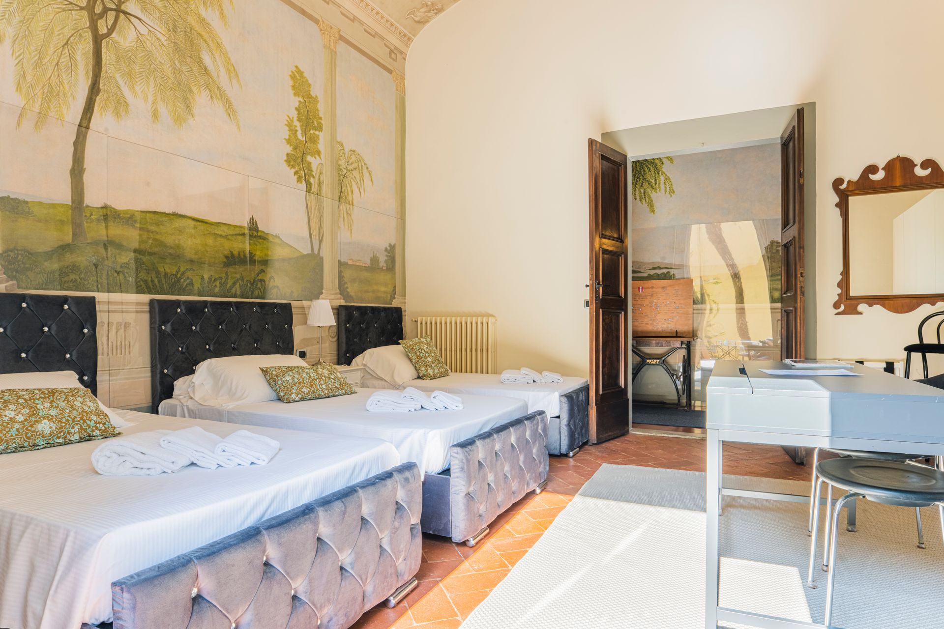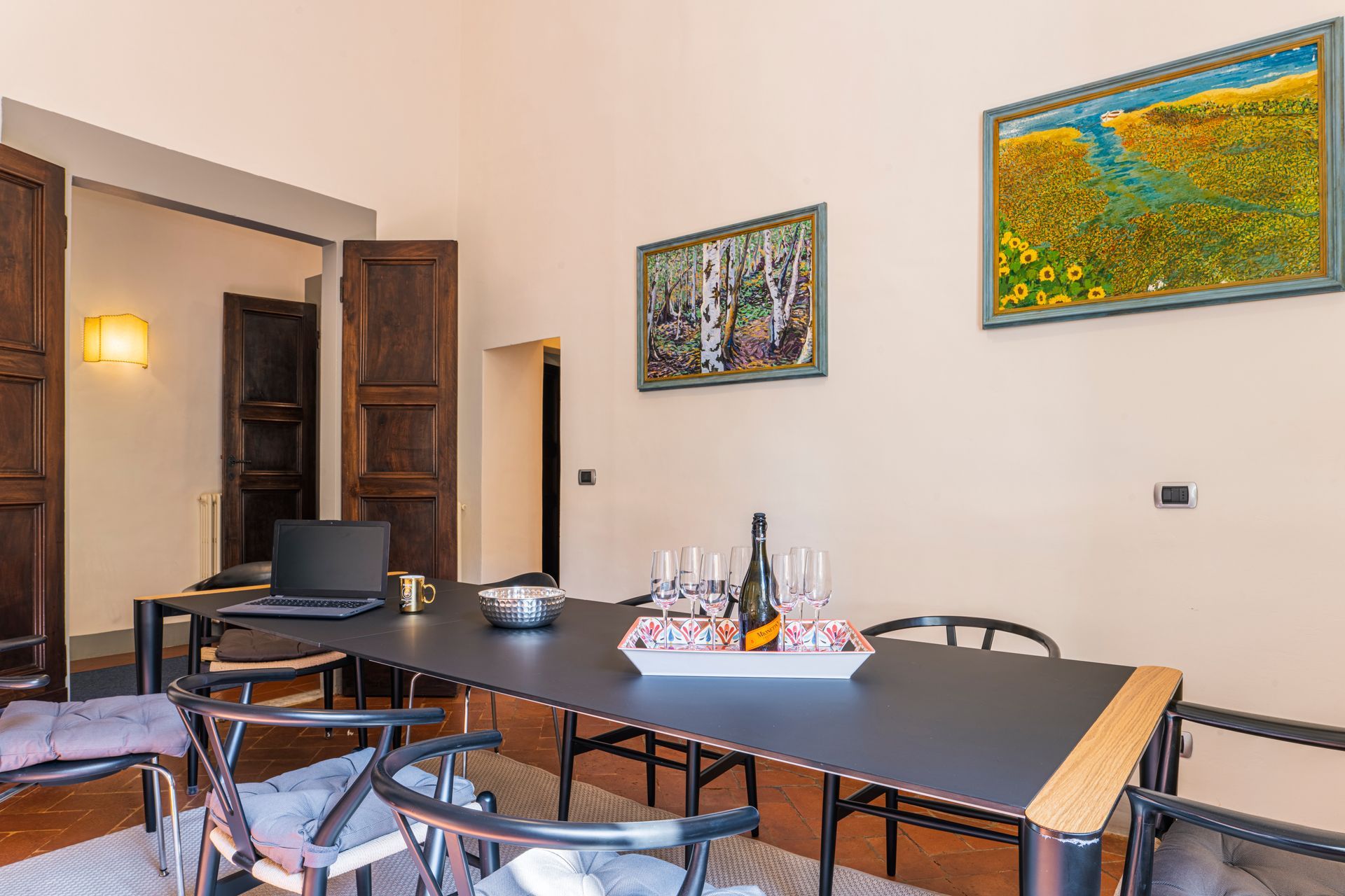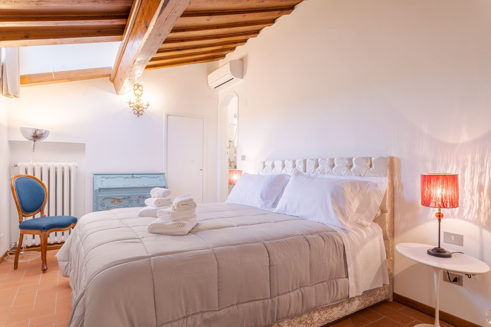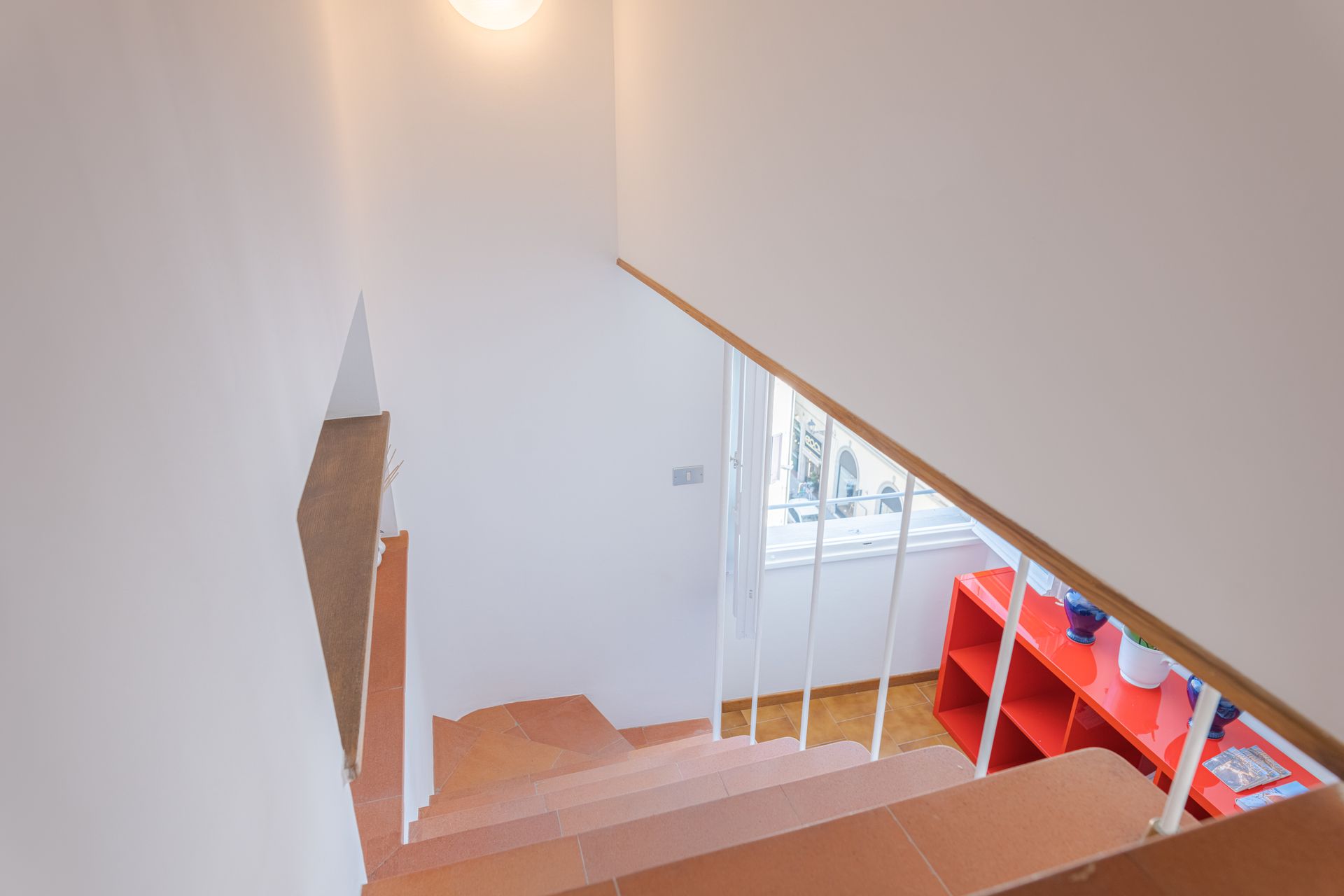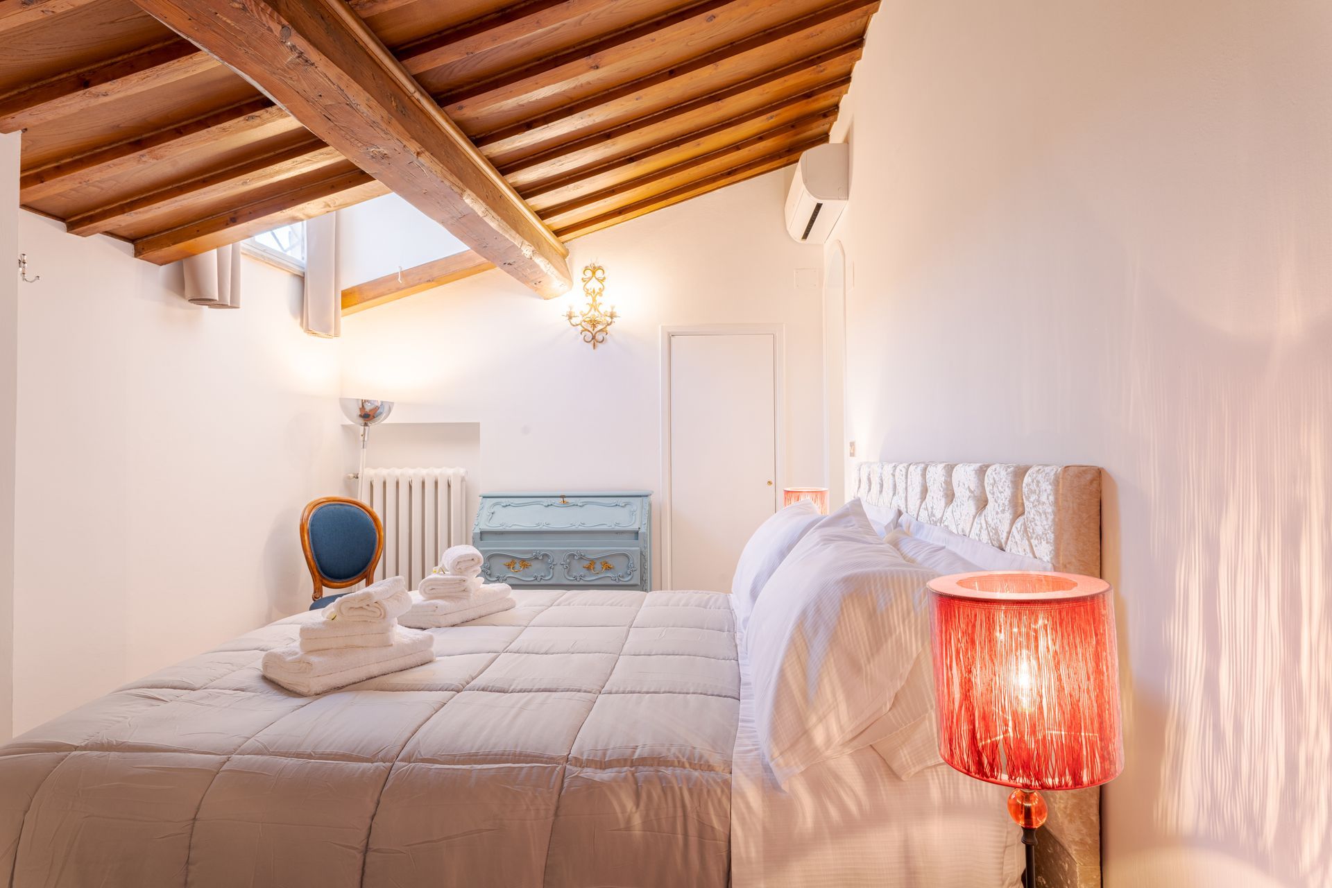 L’appartamento si trova nella porzione interna di Palazzo Pepi e non ha alcuna finestra vie esterne, ha una splendida vista sul giardino interno del Palazzo e gli infissi antirumore assicurano la massima silenziosità.