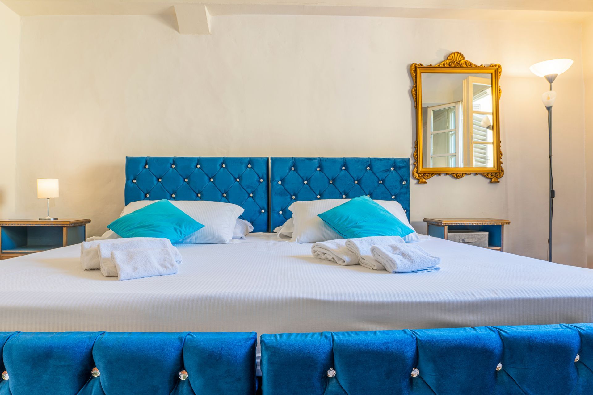 Cinque letti hanno dimensioni 110x200 cm, e sono unibili su richiesta in matrimoniale, mentre i rimanenti tre letti hanno dimensioni pari a 90x200 cm.