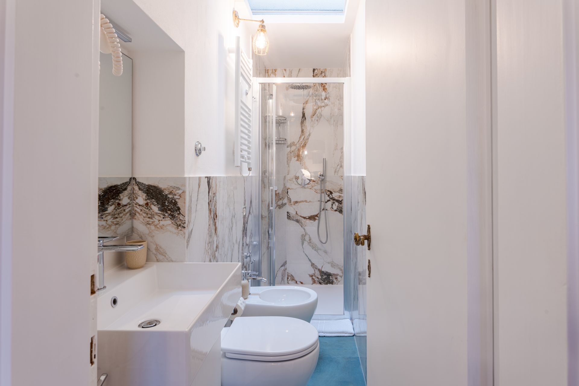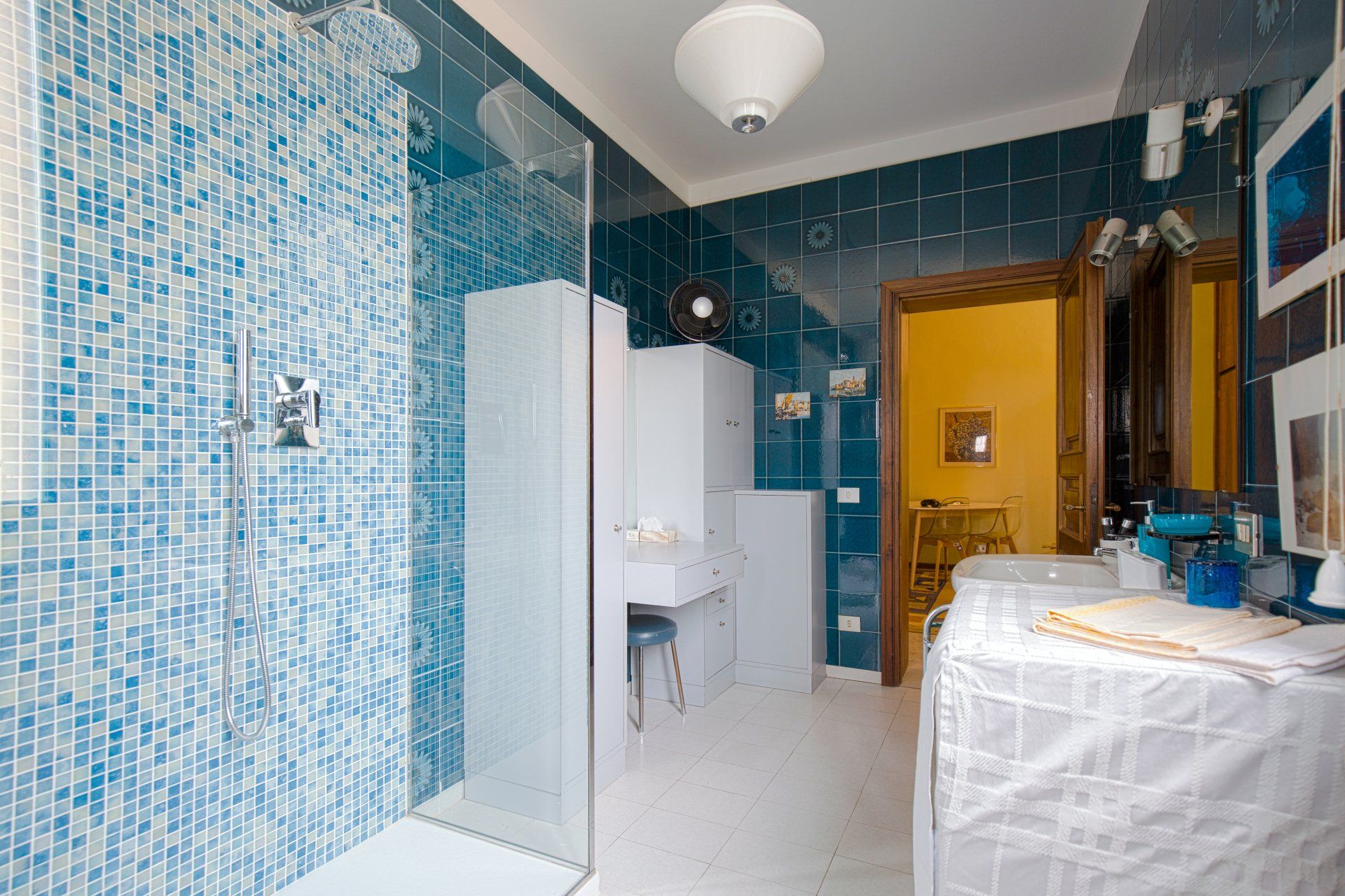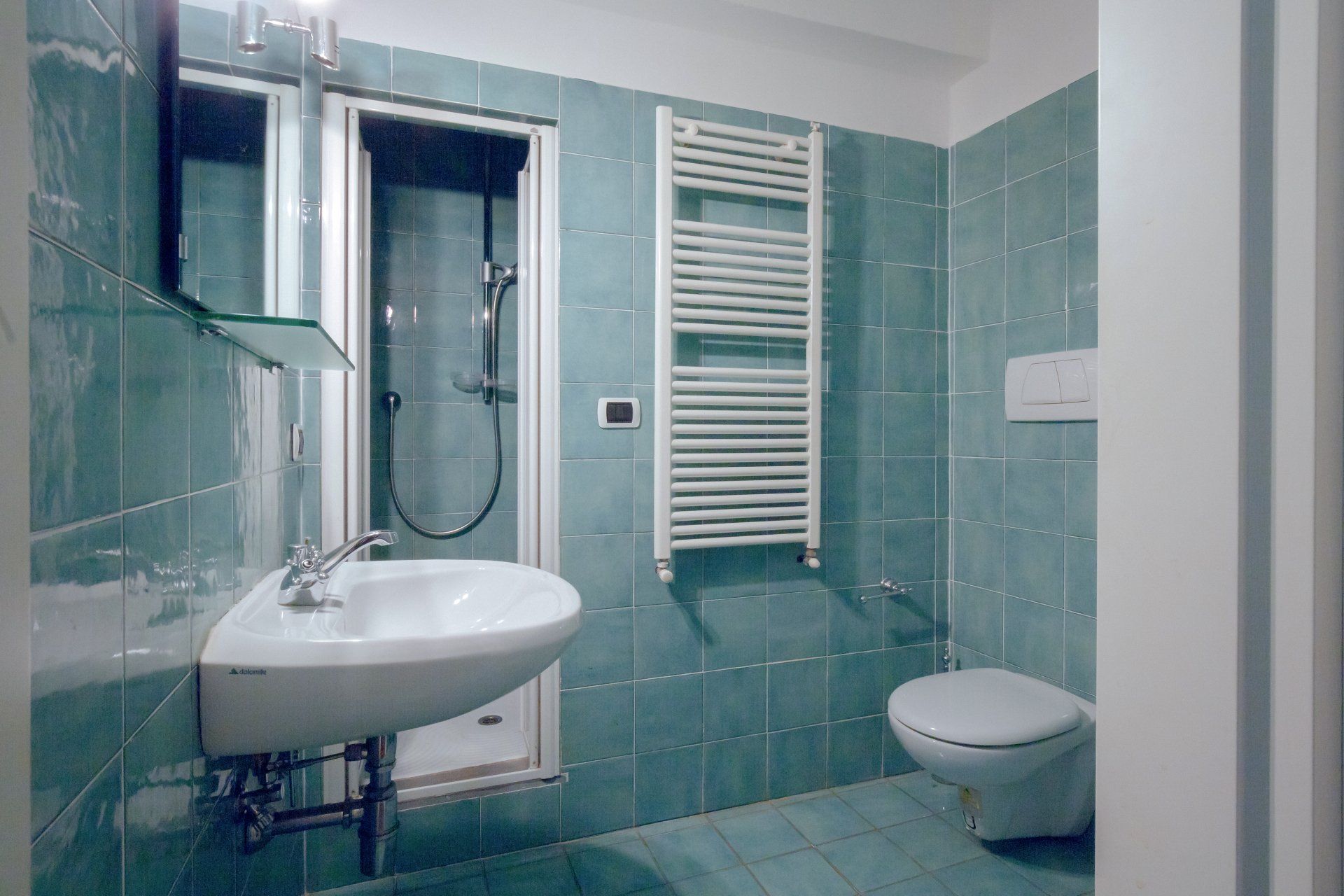 Il bagno, splendido, è molto grande con ampia doccia, lavatrice ed asciugacapelli.
